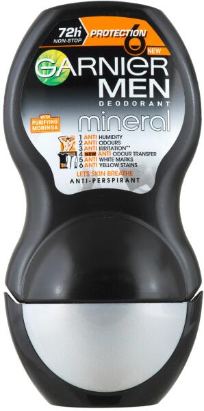 Garnier Men Mineral Protection 6 izzadásgátló golyós dezodor, 50 ml A Garnier első 6in1, akár 72 órás védelme természetes moringatartalommal. Segít megelőzni a kellemetlen szagok megjelenését a bőrön és ezek átkerülését a ruhákra. Mineralite-tal, egy természetes, vulkanikus eredetű nedvszívó ásvánnyal (perlit) gazdagítva. Tiszta és száraz hónaljára vigye fel. Kérj