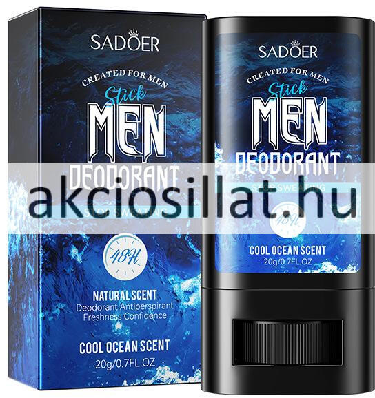 Sadoer Men Deodorant Stop Sweating 48h Stift 20g Tartsd magad frissnek és magabiztosnak a Sadoer Men Deodorant Stop Sweating segítségével! Ez a praktikus stift akár 48 órás izzadásgátló védelmet nyújt, hatékonyan semlegesíti a kellemetlen szagokat, és gyorsan száradó formulájának köszönhetően azonnal használatra kész. Kompakt mérete ideális utazáshoz vagy mindennapi hasz