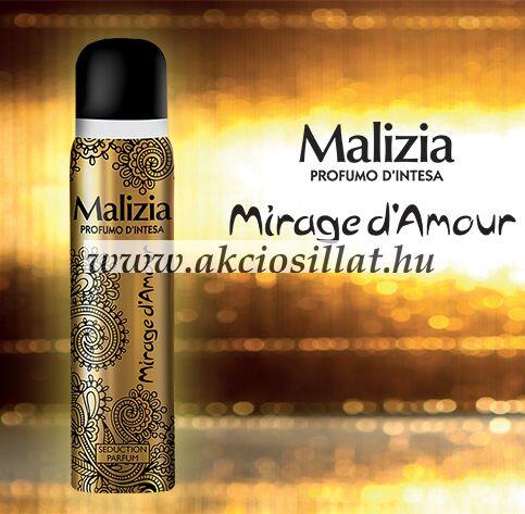 Malizia Mirage d Amour dezodor rendelés webáruház Malizia Mirage d'Amour csábítás új dezodorja, tele keleti esszenciákkal. Az illata egy egzotikus varázs, ami minden nap elvarázsol. Női dezodor Űrtartalom: 100ml Illatszer gyártó: Mirato Made in Italy