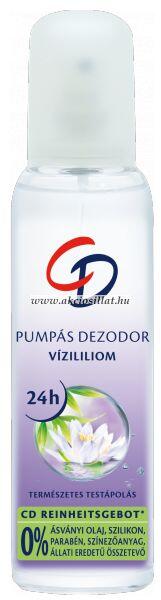 CD vízililiom pumpás dezodor rendelés A természetes vízililiom-kivonatot tartalmazó CD pumpás dezodor hosszan tartó frissességet biztosít. Bőrgyógyászatilag tesztelt Érzékeny bőrtípusra Nem hagy fehér foltot Nem tartalmaz alumíniumsó Női pumpás dezodor Űrtartalom: 75ml Illatszer gyártó: Lornamead Gmbh Made in Germany