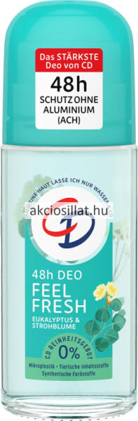 CD Feel Fresh Golyós Dezodor 50ml A CD Feel Fresh Golyós Dezodor 50ml egy friss, tiszta és alumíniummentes megoldás érzékeny bőrre. Kíméletes, bőrbarát formulájának köszönhetően ideális választás mindennapi használatra, miközben 48 órás frissességet biztosít. A dezodor nemcsak a kellemetlen szagokat semlegesíti, hanem friss, könnyed illatával egész nap komfortos érz