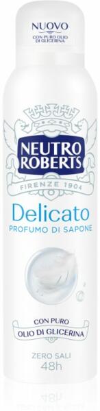 Neutro Roberts Profumo di Sapone, 150 ml, dezodorok nőknek, Bármi legyen is a napi programja, az izzadtságszaggal kapcsolatos aggodalmakat maga mögött hagyhatja. A hatékony Neutro Roberts Profumo di Sapone dezodor megelőzi a kellemetlen testszagot. Kellemes illatúvá varázsolja a bőrét, és leküzdi a kellemetlen szagokat, amelyeket az izzadság és a bőrön lévő baktériumok közöt