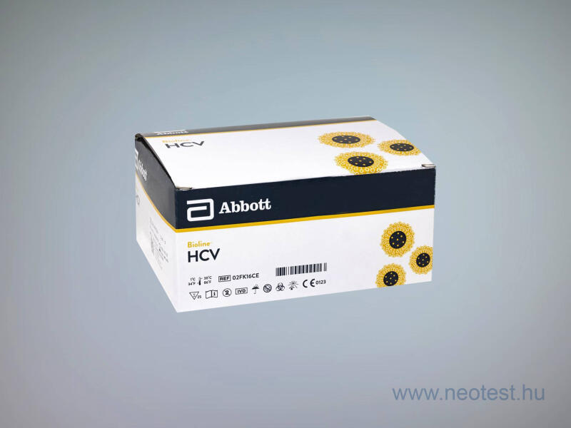 Az ABBOTT Bioline HCV tesztje egy immunkromatográfiás gyorsteszt a HCV-specifikus antitestek kimutatására emberi szérumból, plazmából vagy ujjbegyi, teljes vérből. A vírusos hepatitis felszámolására irányuló globális erőfeszítések során a sikeres eredmények eléréséhez elengedhetetlen a gyors diagnosztizálás. Amikor a gyorsaság a legfontosabb, egy rendkívül érzékeny,