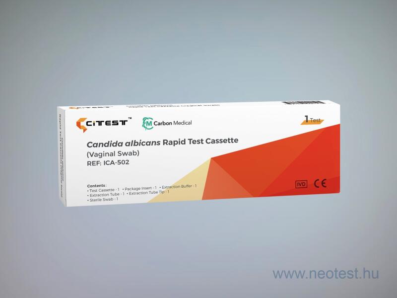 A candida gyorsteszt a gombafertőzés kimutatására használható hüvelymintából. A Candida Albicans egy patogén élesztőgomba, amely gyakran előfordul az emberi bél-flórában. Az egészséges felnőttek 40-60%-ánál kimutatható a gyomor-bélrendszerben, valamint a szájban. A gyorsteszt a Candida Albicans antigén hüvelykenetből történő kvalitatív kimutatására szolgál. A dobo