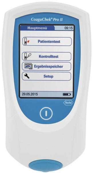 A Roche CoaguChek Pro II véralvadásmérő készülék felhasználóbarát INR és % gyorsérték meghatározást biztosít kapilláris, vénás vagy artériás teljes vérből kevesebb mint 1 perc alatt. A CoaguChek Pro II a heparinszuppresszáló tesztcsíkok révén rendkívül pontos eredményeket szolgáltat, amelyeket nem befolyásol a magas fibrinogén-koncentráció vagy az alacsony hemat
