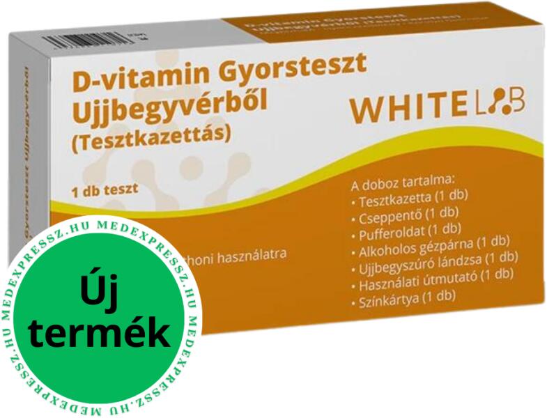 D-vitamin gyorsteszt (10 db) mintavétel: Teljes vér (ujjbegy) Relatív érzékenység: 99,9%, r. specifikusság: 97,2 %, pontosság: 97,5 %. A csomag tartalma: 10 db egyenként csomagolt tesztkazetta, 10 db cseppentő 1 db puffer oldat. A teszt elvégzéséhez nincs szükség analizáló készülékre. A kiértékelésnél 3 osztályozás lehetséges: hiány (0-10 ng/ml), alacsony (10-30) és me
