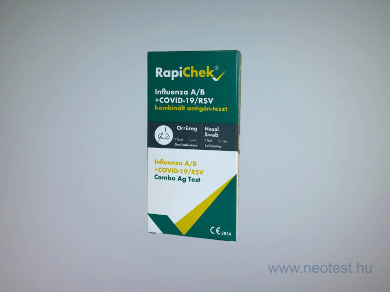 Az Influenza, COVID-19 és RSV fertőzés valamint az aktuális fertőzőképesség fájdalommentes kimutatására -orrüregből Specificitás: COVID-19: 100%, Influenza A/B: 99,34 %, RSV: 99,21%. Szenzitivitás: mindegyik előbb említett vírusnál 95% felletti. Újdonság! Már az influenza és az RSV (respiratory syncital vírus) is kimutatható gyorsteszttel otthonában! A teszt elvégzése a