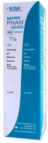 A NefroPHAN Leuco diagnosztikai tesztcsík a vizelet vér-, nitrit- és fehérje tartalmának, valamint pH értékének és leukocyta félkvantitatív meghatározására szolgál. A tesztcsík vese és húgyúti betegségek korai diagnosztizálására és ellenőrzésére alkalmas.