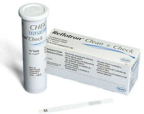 A Reflotron® Clean + Check segítségével a Reflotron® vérelemző készülék könnyen tisztítható és tesztelhető. A Clean + Check készlet 16 tisztító kendőt és 15 tesztcsíkot tartalmaz. Az egyenként csomagolt tisztítókendők a mérőrendszer tisztítására szolgálnak a mellékelt utasításoknak megfelelően. A tisztítást akkor kell elvégezni, amikor a Reflotron® a "Measure