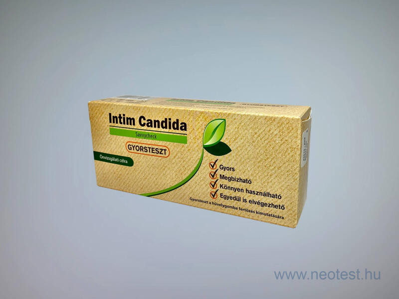 Intim candida gyorsteszt önellenőrzésre (1 db) A teszt mielőbbi használata javasolt, ha a következő tünetek bármelyike fennáll: általános tünetek lehetek: fejfájás, depresszió , fáradékonyság, puffadás, túlzott étvágy, erős édesség utáni vágy, allergiás tünetek, izom-, ízületi fájdalmak és pl. bőrtünetek a Candida fertőzés altesti tünetei lehetnek: menstruác