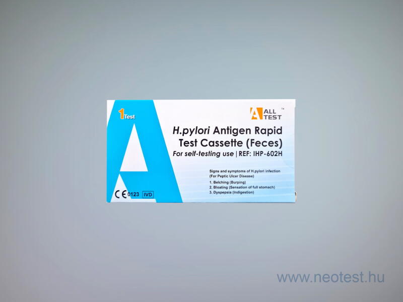 Önellenőrzésre szolgáló teszt, mely alkalmas a Helicobacter Pylori baktérium elleni antitestek kimutatására.