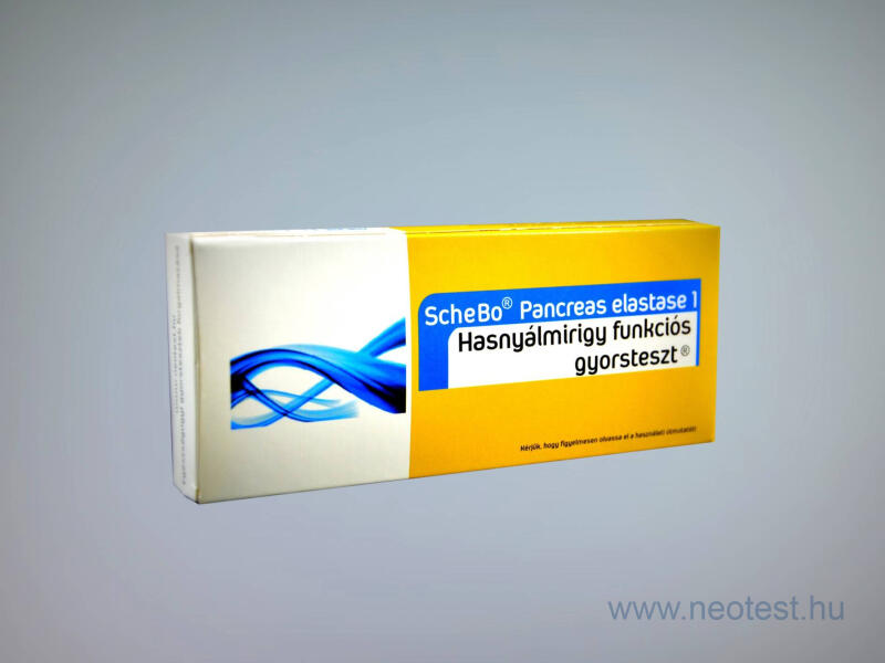 Enzimes hasnyálmirigy funkciós gyorsteszt ScheBo® Pancreas Elastase 1 Quick Rövid, 2 perces videó a teszt használatáról: IDE KATTINTVA érhető el. A ScheBo® Pancreas Elastase 1 Gyorsteszt egy vizuálisan értékelhető immunkromatográfiás eljárás. IVD eszköz. Reagenses változata kizárólag professzionális használatra alkalmazható. Ha a teszt csökkent enzim mennyiséget mutat,