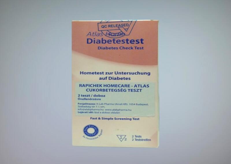 A RapiChek HomeCare – Atlas Diabetes Check otthoni cukorbetegség teszt készlet vizeletbe mártandó tesztcsíkokat tartalmaz, és a vizeletminták glükóz-és ketonszintjének ellenőrzésére szolgál a cukorbetegség diagnózisának segítésére. A teszt a dobozra nyomtatott színskálával való vizuális összehasonlítással ad eredményt. Az egyes színek a glükóz- és ketonkoncentr