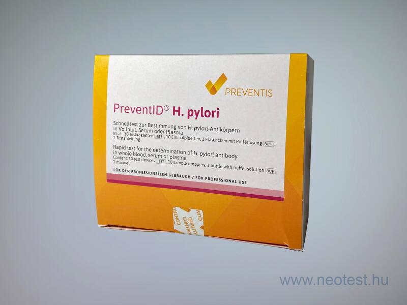 A PreventID Helicobacter pylori teszt gyors immunkromatográfiás assay, ami a Helicobacter pylori antitestjeinek (IgG és IgM) teljes vérben, humán plazmában vagy szérumban való kvalitatív meghatározására szolgál. A teszt segítséget nyújt a H. pylori baktériummal való fertőzések diagnosztizálásában. Szenzitivitás és specificitás: a relatív szenzitivitás 97,2%, a relatív