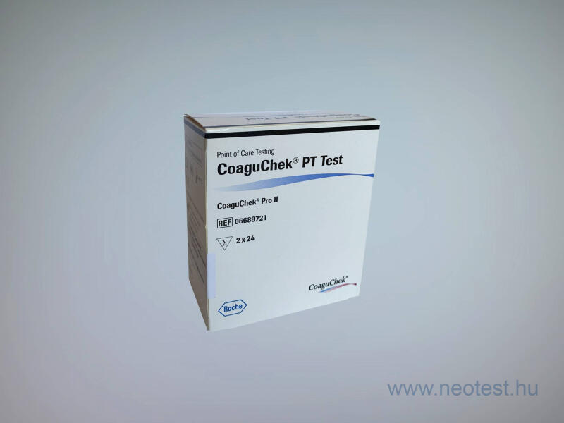 CoaguChek PT Test (CoaguChek PRO II készülékhez) 2x24 INR mérő tesztcsík/doboz A teszt felhasználhatósági ideje: 2025.08. 31. A CoaguChek PRO II analizáló készülékhez Magyarországon a 2x24 db-os kiszerelésnél nincs kisebb forgalomban. Activált parciális tromboplasztin időhöz (aPTT) méréshez egy másik tesztcsíkot ajánlunk, melynek linkjét ITT találják. Cégünk a Roche