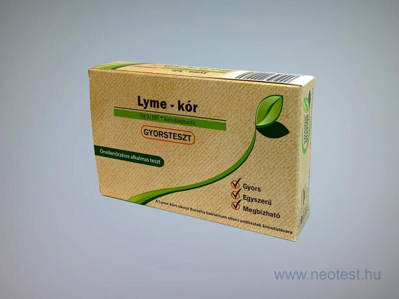 Otthon elvégezhető, önvizsgálatra alkalmas Lyme-kór gyorsteszt. Mire való a Lyme-kór teszt? A kullancs okozta csípés esetén a Lyme-kórt okozó Borrelia baktérium korai kimutatására szolgáló önellenőrző gyorsteszt, mely egy csepp ujjbegyi vérből vizsgál. Mikor kell elvégeznie a Lyme-kór tesztet? A Lyme-kór tesztet már a kullancscsípés időpontjától számított 2 és 4