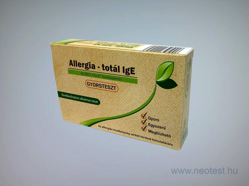 Allergia Totál (IGE antitestek) kimutatására szolgáló gyorsteszt egy csepp vérből (önellenőrzésre) Mikor érdemes az allergia totál tesztet elvégezni? Az Allergia tesztet akkor javasolt elvégezni, ha allergiára jellemző tüneteket tapasztalunk, úgymint kiütések, bőrpír, könnyezés, tüsszögés poros közegben, állatokkal (kutya, macska) való érintkezéskor, vagy bizonyos