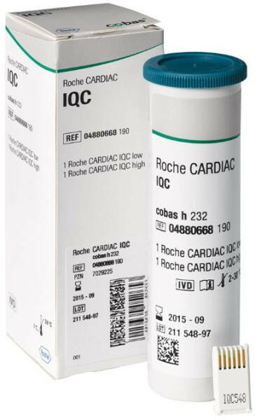 A Roche CARDIAC IQC tesztcsíkok a cobas h232 point-of-care analizátor optikai rendszerének napi ellenőrzésére szolgálnak. Ezek két újrafelhasználható tesztcsík, egy az alsó tartomány, egy pedig a felső tartomány tesztelésére. A Roche CARDIAC IQC tesztcsíkok a cobas h232 point-of-care analizátor optikai rendszerének napi ellenőrzésére szolgálnak. Ezek két újrafelhasználh