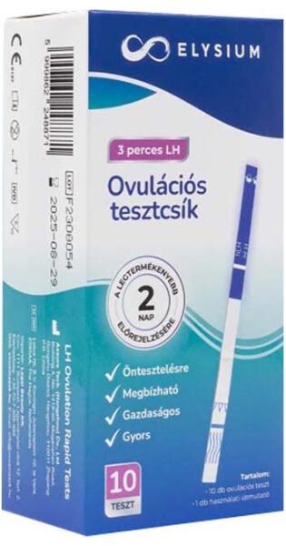 Elysium ovulációs tesztcsík a luteinizáló hormon (LH) kvalitatív előrejelzésének kimutatására. Az öntesztelésre készült ovulációs tesztcsíkok kiválóan alkalmasak a legtermékenyebb 2 nap meghatározására.