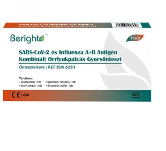 A Beright SARS-CoV-2 és influenza A+B antigén kombinált gyorstesztje orrlyukból vett mintából képes kimutatni mind az új koronavírust, mind a hagyományos influenza A, ill. B típusát. A teszt segítségével a páciens megtudhatja, hogy az új koronavírussal vagy influenzával betegedett-e meg. A teszt azt fogja megerősíteni, hogy az illető fertőző-e, ill. melyik vírussal. A COVI