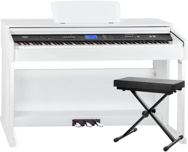 Fekete vagy fehér színben elérhetőHordozható 88 billentyűs digitális zongora lábazattalSzín: Fekete vagy FehérÉrzékenység: 4 típusúKalapácsmechanikás elefántcsont érzetű billentyűzetKottatartóPolifónia: 81Ritmus: 30Stílus: 30Hangszín: 90 / 128 soundsPiano sound: 4 szint/100millió60 demó dal, 10 létrehozható felhasználói dalMetronóm: 2,3, 4,5, 6Voice model: Main, Twi