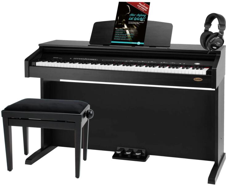88 billentyűs súlyozott kalapácsmechanikás digitális pianínó Kalapácsmechanikás billentyűk Érintés érzékenység: 3 választható minta, kikapcsolás Hangok: 16 hang Single/Split/Layer módban Háttérvilágítású kijelző Polifónia: 64 hangú Effektek: 3 reverb, Kórus Vezérlők: Fő hangerő, Brilliance 8 szint:-4 / +4, Fel/Le gombok 2 sávos szekvenszer Metronóm: 2/4, 3/4, 4/4