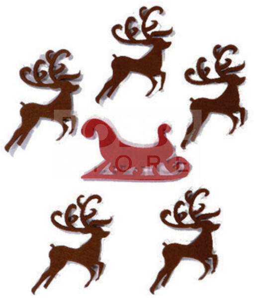 Filcfigura - Rénszarvas vágtató + szán (6 db/cs, átm. kb. : 6 cm) 23255 A barkácsfilcek és a hobbi filcek rengeteg színárnyalatban kaphatóak. Ragasztható, varrható, ideális bábok, füzetborítók, képek, rátétek könnyű és gyors elkészítéséhez és díszítéséhez. Használhatóak táskák és különböző textil termékek, dekorgumik díszítéséhez is. Különösen aján