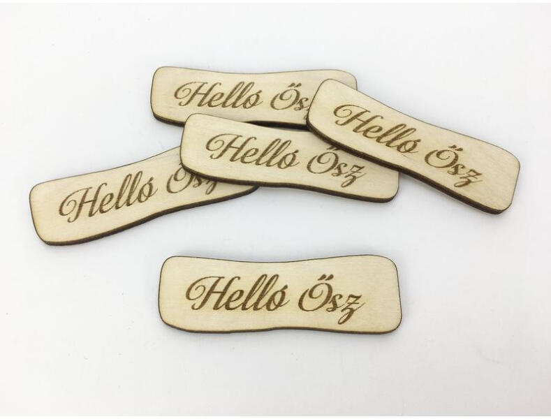 Egyedi lézervágott "Helló Ősz" feliratos íves szélű fatáblák. . Méretek : mag: 2.3cm, szél: 7cm, vastagság: 3mm