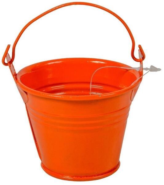 Jellemzői: alapanyaga fém dekorációs és kreatív célokra mméretek: 7 cm x 7 cm x 4 cm narancs színben kapható Hangulatos fém vödröcske, dekorációs célra, kreatív felhasználásra, kaspóként, tárolóként is használható.