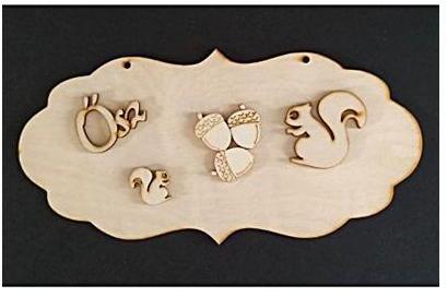 Natúr fa őszi alkotókészlet. A szett tartalma:- fa tábla - két mókus - három makkFesd ki a táblát és a figurákat kedvenc őszi színeidre, díszítsd csipkével, szalaggal, terméssel, egyedi és különleges kopogtatót alkotva belőle.