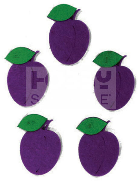 Filcfigura - Szilva (5 db/cs, átm. kb. : 6 cm) 23227 A barkácsfilcek és a hobbi filcek rengeteg színárnyalatban kaphatóak. Ragasztható, varrható, ideális bábok, füzetborítók, képek, rátétek könnyű és gyors elkészítéséhez és díszítéséhez. Használhatóak táskák és különböző textil termékek, dekorgumik díszítéséhez is. Különösen ajánlott óvodásoknak, kis