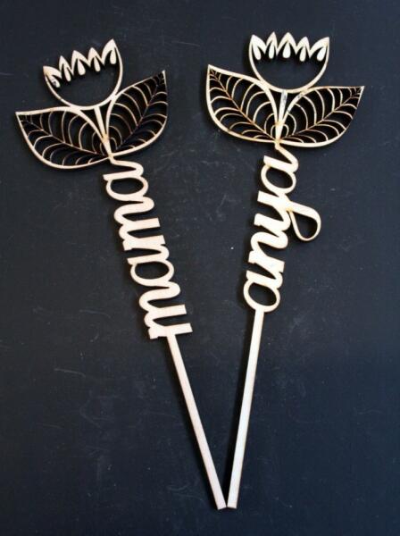 A lézerrel vágott fa virágok rétegelt lemezből készülnek, méretük 15 x 30 cm. A termék anyaga 4 mm vastag falemez, ami natúr felületű, festhető és dekupázsolható. A virágok szárában különböző szövegek választhatóak, mint például "ANYA", "MAMA", "LOVE", "SZERETLEK". Egyedi felirat ebben a termékben nem elérhető, de a 40 cm-es virágok esetében kérhető. A webáruh