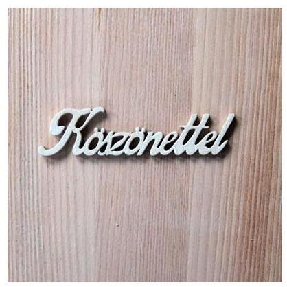 Lézervágott, fehérre festett fa 'Köszönettel' felirat. Festhető, ragasztható, kihagyhatatlan alkotóeleme koszorúknak, kopogtatóknak, asztali kompozícióknak.