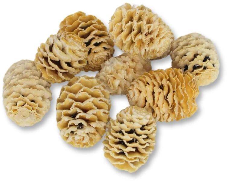 Fehérített toboz terméscsomag különböző igényes dekorációk elkészítéséhez.