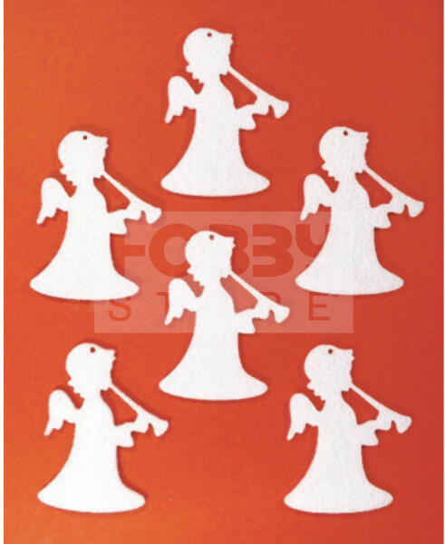 Filcfigura - Angyal álló trombitás (6 db/cs, átm. kb. : 6 cm) 23265 A barkácsfilcek és a hobbi filcek rengeteg színárnyalatban kaphatóak. Ragasztható, varrható, ideális bábok, füzetborítók, képek, rátétek könnyű és gyors elkészítéséhez és díszítéséhez. Használhatóak táskák és különböző textil termékek, dekorgumik díszítéséhez is. Különösen ajánlott