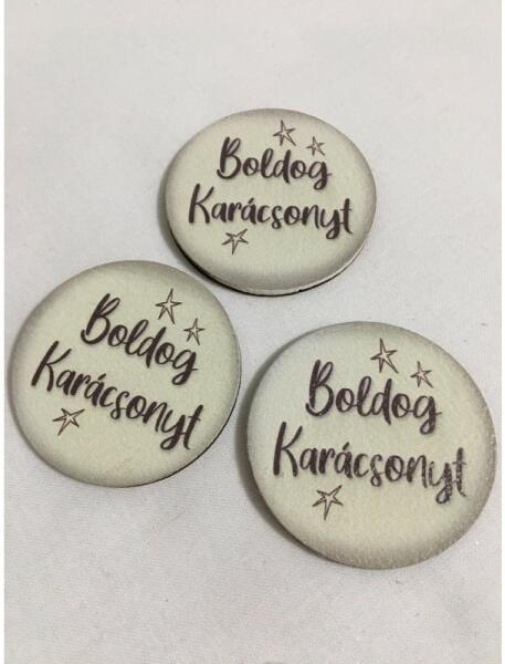 5 cm átmérőjű, 3 mm vastag, krém színű fa tábla, barna Boldog Karácsonyt felirattal. Karácsonyi (téli) dekorációk, ajándéktárgyak készítéséhez, díszítéséhez. Az ár 1 db táblára vonatkozik!
