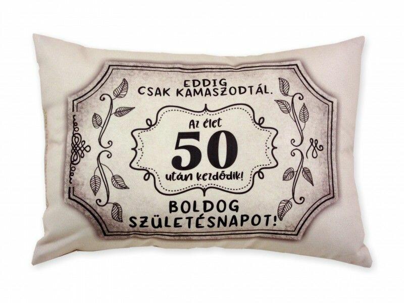 Díszpárna Boldog 50. Születésnapot barna 38x28cm 04581 Befoglaló méretek 38x10x28 cmAnyaga textil