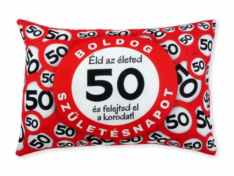 Díszpárna Boldog 50. Születésnapot 38x28cm 04588 Befoglaló méretek 38x10x28 cmAnyaga textil