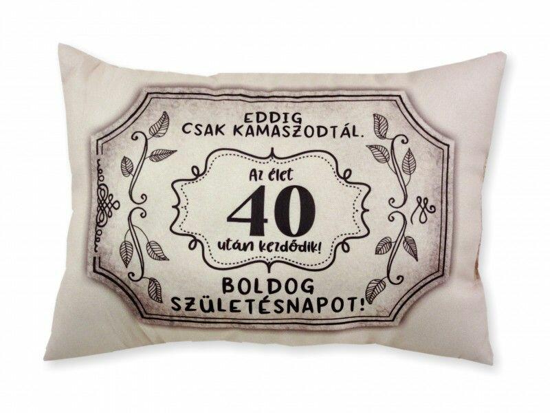 Díszpárna Boldog 40. Születésnapot 38x28cm 04580 Befoglaló méretek 38x10x28 cmAnyaga textil
