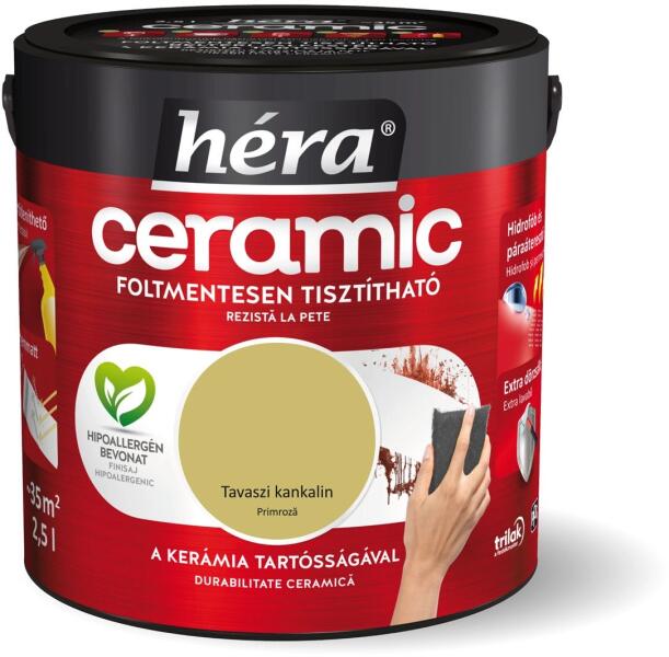 Mosható, dörzsölhető beltéri falfesték a kerámia tartósságával. Foltmentesen tisztítható, hipoallergén bevonat, fertőtleníthető, selyemmatt, hidrofób és páraáteresztő, extra dörzsálló.