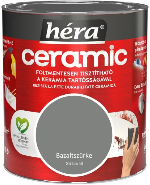 A Héra Ceramic speciális mikrokerámia-gyöngy tartalmának köszönhetően a legellenállóbb Héra beltéri falfesték. A kerámia technológia kimagasló mosás- és dörzsállóságot biztosít a felületnek, így téve azt foltmentesen tisztíthatóvá és fertőtleníthetővé. A Héra Ceramic falfesték hidrofób alkotórészei révén vízlepergető bevonatot képez, miközben innovatív