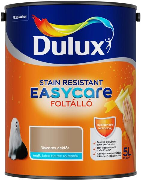 DZ Easycare Fűszeres Nektár 5 l. Forradalmi víztaszító tulajdonságú beltéri falfesték. A festék egyedülálló összetételének köszönhetően a falról lepereg a víz és a legtöbb folyékony szennyeződés, amelyek így nem hatolnak mélyen a bevonatba. Rendkívül ellenálló felületet hoz létre, amelyről gyerekjáték a kosz eltávolítása.