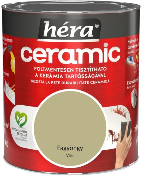 A Héra Ceramic speciális mikrokerámia-gyöngy tartalmának köszönhetően a legellenállóbb Héra beltéri falfesték. A kerámia technológia kimagasló mosás- és dörzsállóságot biztosít a felületnek, így téve azt foltmentesen tisztíthatóvá és fertőtleníthetővé. A Héra Ceramic falfesték hidrofób alkotórészei révén vízlepergető bevonatot képez, miközben innovatív