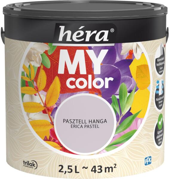 Kiváló minőségű, tartós matt festék beltéri falfelületek festésére. A Héra MyColor beltéri matt falfesték kiváló fedőképességű, mosható, pára- és legáteresztő bevonatot képez, színei pedig élénkek és tartósak. Egyszerű használatának és illatosított formulájának köszönhetően széles körben alkalmazható. Kiemelkedő fedőképesség Páraáteresztő Divatos
