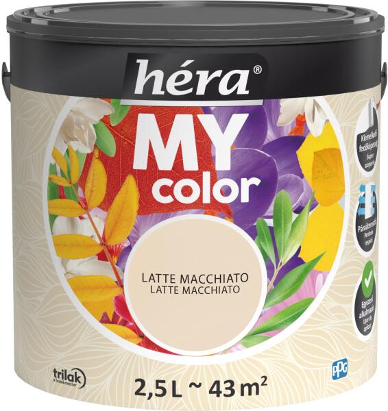 Kiváló minőségű, tartós matt festék beltéri falfelületek festésére. A Héra MyColor beltéri matt falfesték kiváló fedőképességű, mosható, pára- és legáteresztő bevonatot képez, színei pedig élénkek és tartósak. Egyszerű használatának és illatosított formulájának köszönhetően széles körben alkalmazható. Kiemelkedő fedőképesség Páraáteresztő Divatos