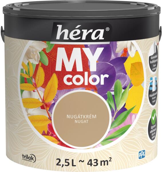 Kiváló minőségű, tartós matt festék beltéri falfelületek festésére. A Héra MyColor beltéri matt falfesték kiváló fedőképességű, mosható, pára- és legáteresztő bevonatot képez, színei pedig élénkek és tartósak. Egyszerű használatának és illatosított formulájának köszönhetően széles körben alkalmazható. Kiemelkedő fedőképesség Páraáteresztő Divatos