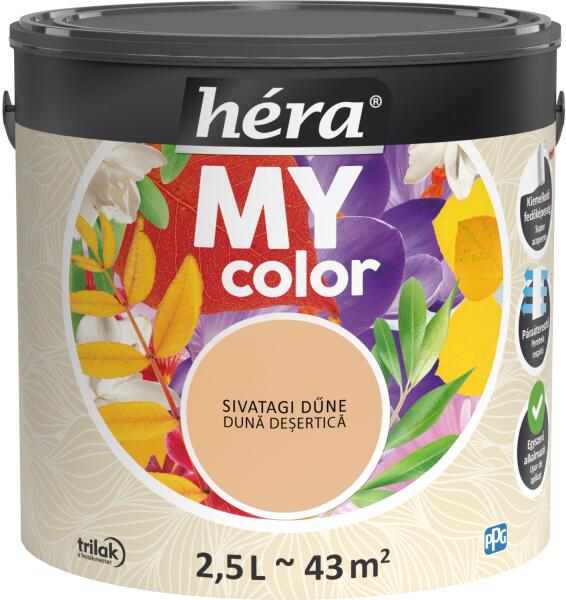 Kiváló minőségű, tartós matt festék beltéri falfelületek festésére. A Héra MyColor beltéri matt falfesték kiváló fedőképességű, mosható, pára- és legáteresztő bevonatot képez, színei pedig élénkek és tartósak. Egyszerű használatának és illatosított formulájának köszönhetően széles körben alkalmazható. Kiemelkedő fedőképesség Páraáteresztő Divatos