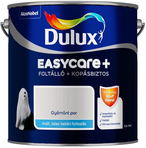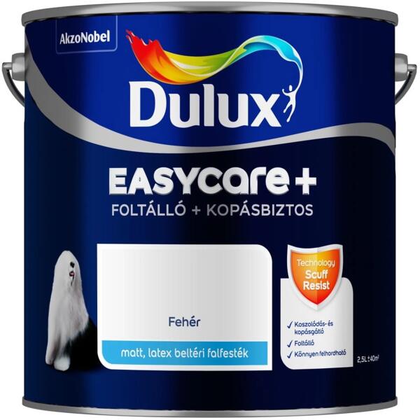 A Dulux Easycare+ foltálló, kopásbiztos falfesték a mechanikai hatásoknak kivételesen ellenálló tuladonságú, matt, latex, beltéri falfesték. A termék a kopásbiztos technológiának köszönhetően különlegesen tartós és szilárd bevonatot alkot, amelyen mérsékelten alakulnak ki szennyeződés-, dörzsölés-, és kopásnyomok. A fa, műanyag vagy gumi tárgyak (bútorok, porsz