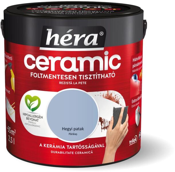 A Héra Ceramic speciális mikrokerámia-gyöngy tartalmának köszönhetően a legellenállóbb Héra beltéri falfesték, mely egészségügyi minősítéssel is rendelkezik! A kerámia technológia kimagasló mosás-és dörzsállóságot biztosít a felületnek, így téve azt foltmentesen tisztíthatóvá és fertőtleníthetővé. A Héra Ceramic falfesték hidrofób alkotórészei révén v