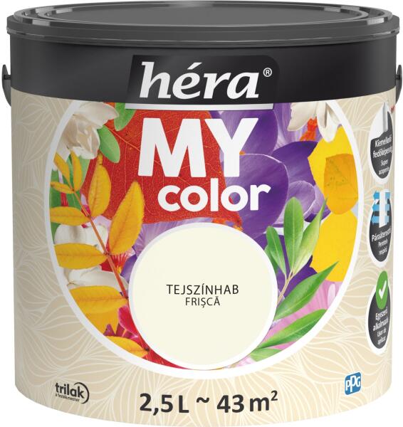 Kiváló minőségű, tartós matt festék beltéri falfelületek festésére. A Héra MyColor beltéri matt falfesték kiváló fedőképességű, mosható, pára- és legáteresztő bevonatot képez, színei pedig élénkek és tartósak. Egyszerű használatának és illatosított formulájának köszönhetően széles körben alkalmazható. Kiemelkedő fedőképesség Páraáteresztő Divatos